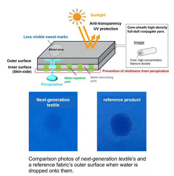 近年来,由于气温上升,对具备冷感功能的材料需求不断增强;同时,随着人们对外观的关注度提高,运动员群体也越来越需要能够减少汗渍显现的功能。基于这些背景,公司将其定位为 2027 年春夏季重点推广的运动与户外用材料,向国内外客户进行提案。